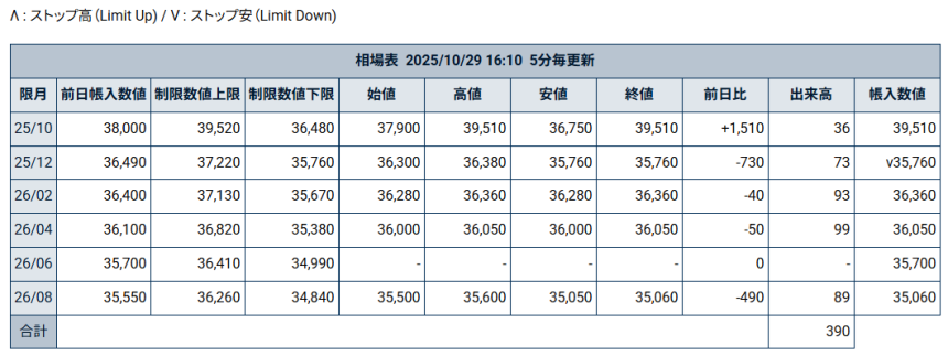 10月29日の堂島コメ平均(先物)/10月限急騰・12月限ストップ安、価格差約4,000円