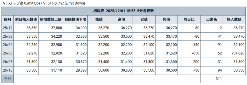 12月1日の堂島コメ平均(先物)/来秋限月は30,530円