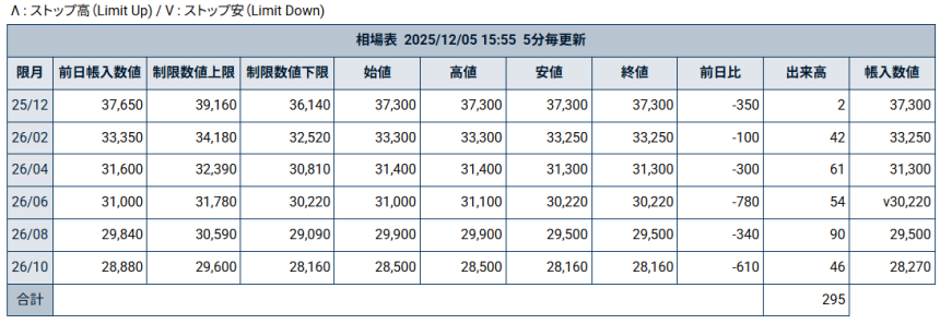 12月5日の堂島コメ平均(先物)/全面安で来秋限月28,880円