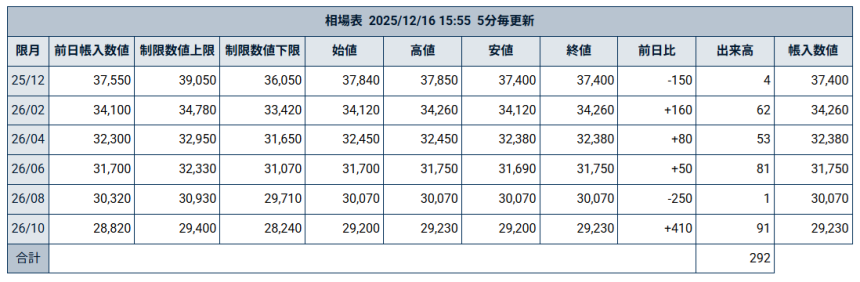 12月16日の堂島コメ平均(先物)/2日連続の全面上げ、来秋限月は29,000円台に