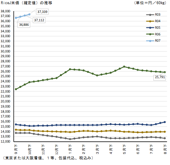 全米販が算出する「RiceJ米価」、令和7年産11月中旬は、「34,442円」(11月上旬比▲478円、前年同期比+10,354円)となった。 10月までの確定値は以下の通り。 「RiceJ米価」は、全米販オリジナルの国内産主食用うるち米価格の指標で、毎月3回(上中下旬)更新する。オリジナルと […]